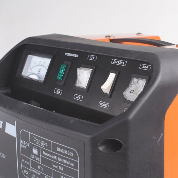 Заряднопредпусковое устройство PATRIOT BCT-30 Boоst используется для зарядки аккумуляторов напряжением 12В и 24В легковых автомобилей, мотоциклов, моторных лодок и строительной техники. Аппарат оборудован автоматическим устройством защиты от короткого замыкания и перегрузки. Обрезиненные ручки зажимов исключают удары током, что обеспечивает безопасность во время работы. Вентиляционные отверстия, расположенные на корпусе, способствуют отводу теплого воздуха изнутри, что предотвращает перегрев.