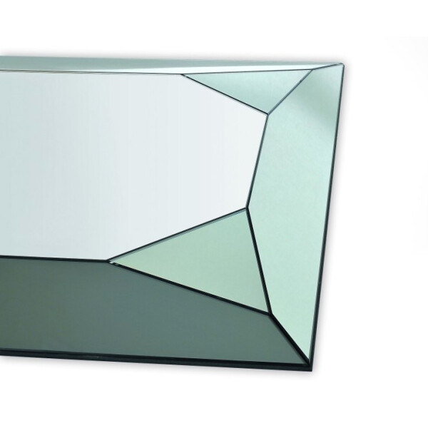 Квадратное зеркало пространственно-образный корпус с толщиной 50 мм. Симметрично уложенные составные элементы возникли в результате проникновения регулярных геометрических глыб. Все части, выполненные из точно подогнанных элементов графитового зеркала с лощеными полосами.