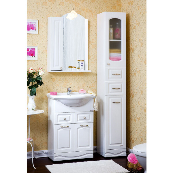Даже в небольшой по размерам ванной комнате можно создать уют и красоту. И поможет в этом великолепная зеркальная полка «Анна 60 см» (белый глянец), выполненная в неоклассическом стиле.