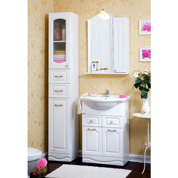 Даже в небольшой по размерам ванной комнате можно создать уют и красоту. И поможет в этом великолепная зеркальная полка «Анна 60 см» (белый глянец), выполненная в неоклассическом стиле.