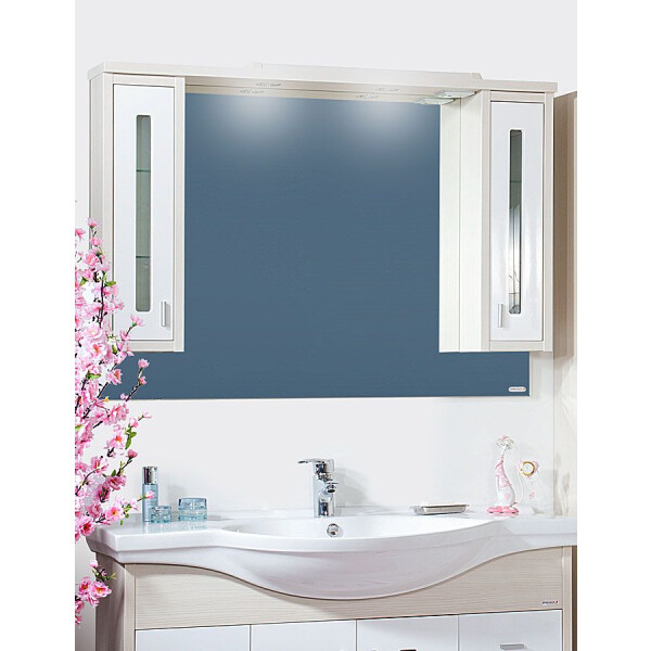 Все средства для ухода за кожей и принадлежности для нанесения макияжа легко разместятся в двух шкафчиках, расположенных по краям зеркального полотна.