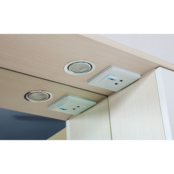 Слева расположен шкафчик, способный скрывать все косметические и гигиенические принадлежности, необходимые для ухода за телом.