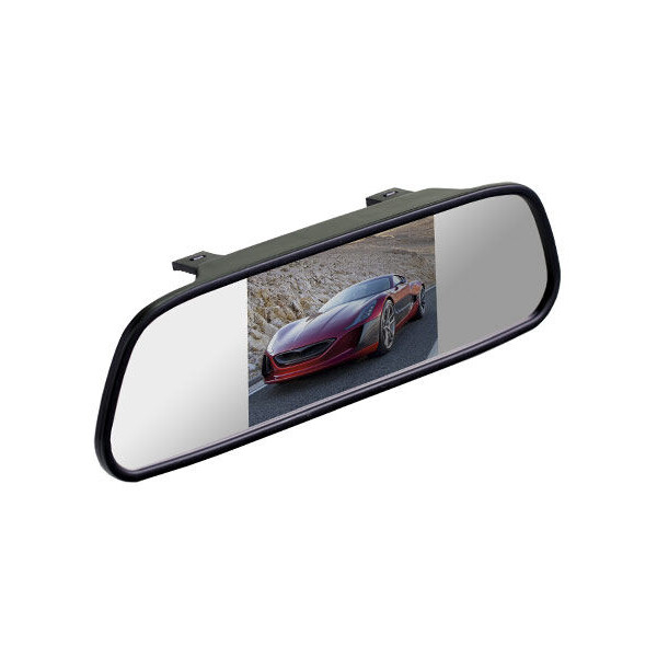 Зеркало для камеры заднего вида со встроенным экраном 5 дюймов. Подключается с любой камерой заднего вида. Это современное устройство удачно совмещает в себе зеркало заднего вида и монитор. Прибор позволяет подключать к себе 2 различных источника видеосигнала.