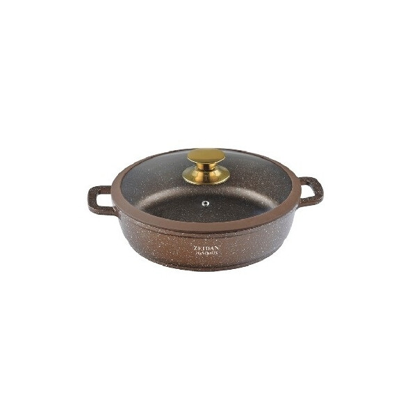 Жаровня Zeidan Z-50360 диаметром 32 см, 6,6 л - изготовлена из высококачественного литого алюминия с внутренним и внешним каменным покрытием "GRANITE" и имеющее повышенную прочность и отличные антипригарные свойства. Литой алюминий отличается долговечностью и способностью быстро и равномерно нагреваться и аккумулировать тепло, что приводит к экономии энергии и способствует быстрому приготовлению пищи. Эргономичные ручки, к которым прилагаются силиконовые накладки. Крышка из жаропрочного стекла с силиконовым ободком, оснащена отверстием для выхода пара. Металлическая ручка на крышке "под золото". Подходит для всех видов плит, включая индукционную.